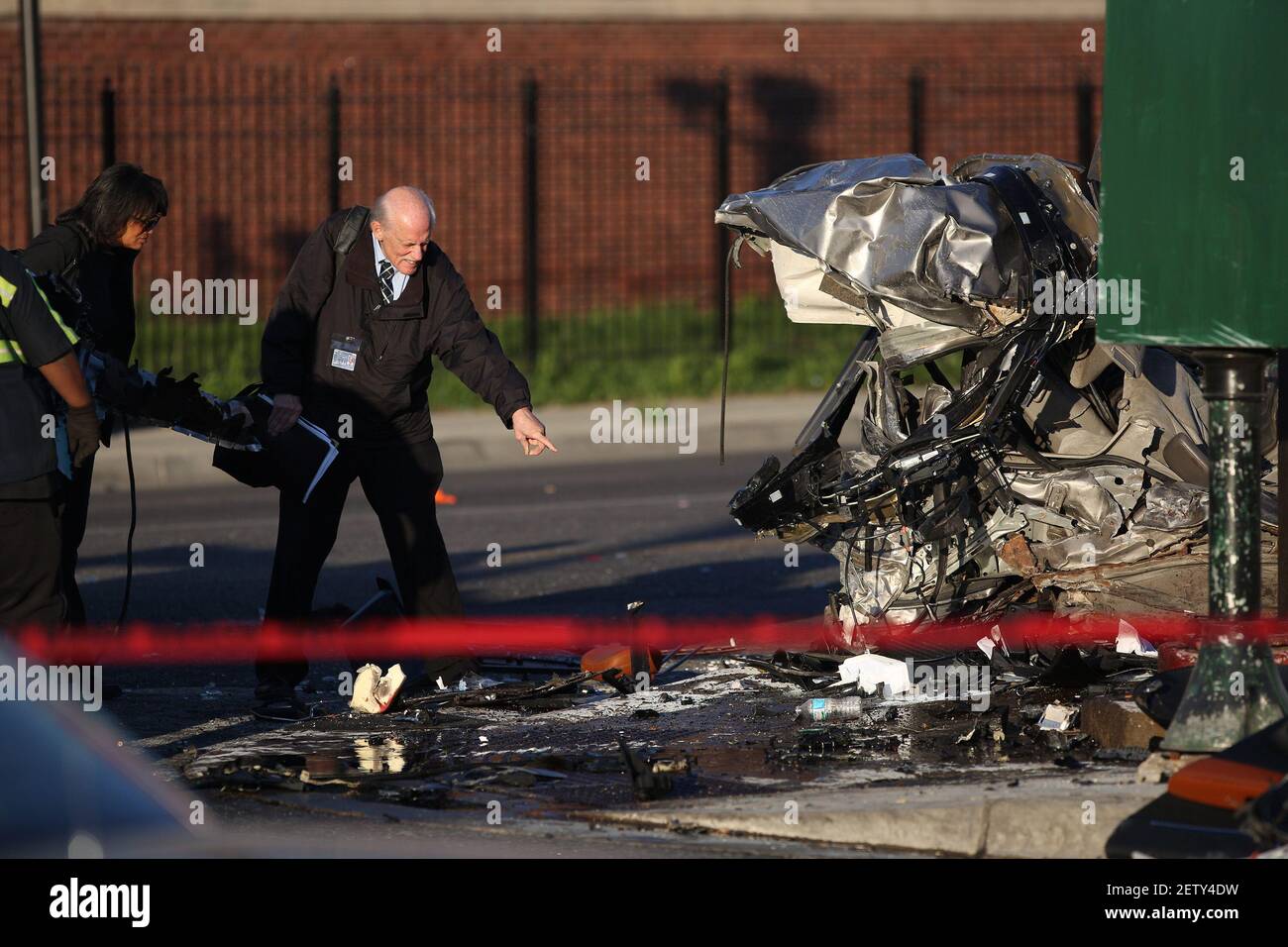 Chicago Police Officers Investigate The Scene Of A Double Fatal Car Crash That Involved An Off Duty Police Officer At The Intersection Of South Kostner Avenue And West Roosevelt Road On Tuesday June